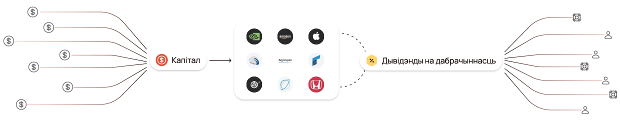 Сродкі размяшчаюцца ў надзейныя фінансавыя інструменты (акцыі, аблігацыі, фонды і інш.), што дазваляе атрымліваць стабільны прыбытак.